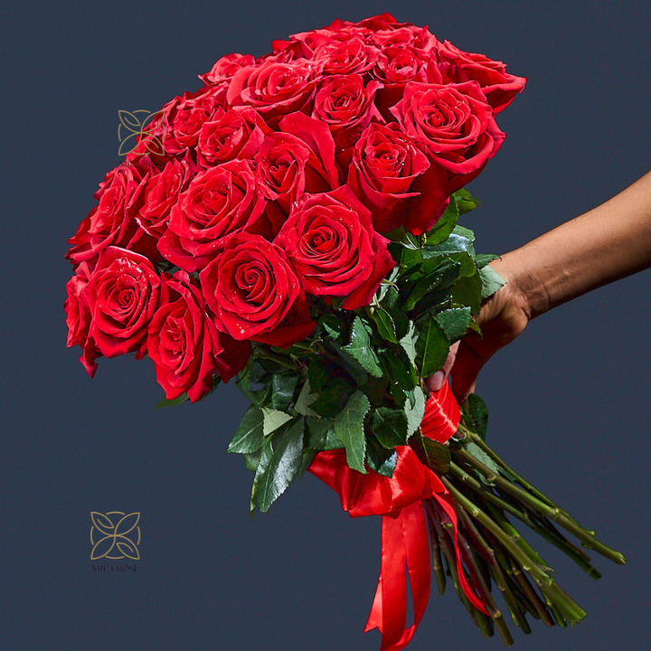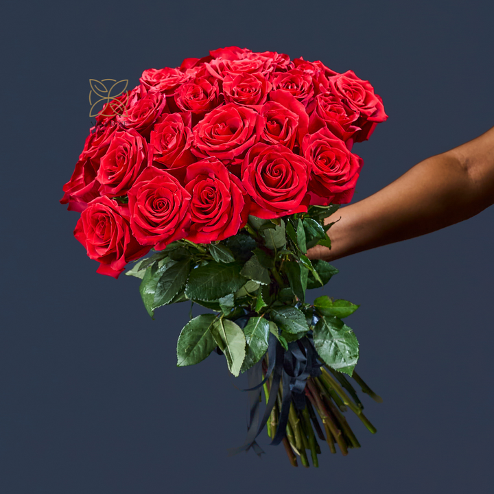 A royal bouquet worthy of the kings of emotions, where elegance embodies design and beauty embodies meaning. 25 luxurious roses of the finest varieties, carefully selected to be at their peak freshness and perfection, harmonize in a mesmerizing symphony that captivates the eyes and astonishes the mind. Each rose carries a story of luxury in its petals, and every bud announces the arrival of an extraordinary occasion.
